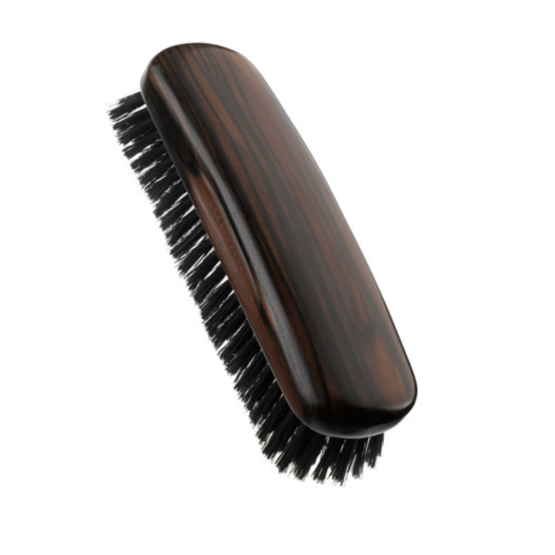 Die Kleiderbürste mit schwarzen Borsten ist aus hochwertigsten Materialien gefertigt und schont den Stoff .