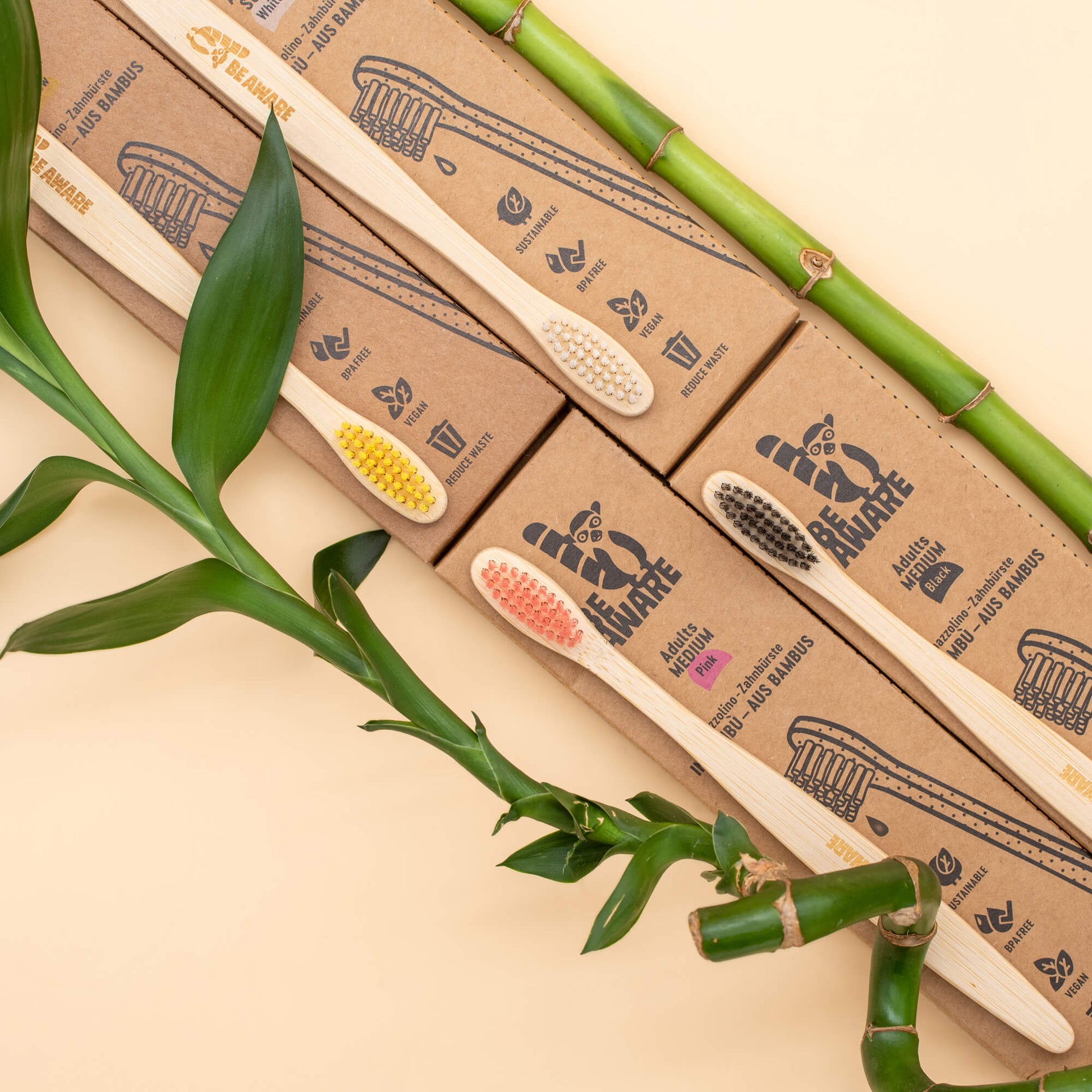 Gelbe Bambuszahnbürste für Erwachsene mit mittelgroßen Borsten