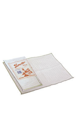 Superweißes Geschirrtuch, Wabenverarbeitung, vier Webkanten, allseitig gesäumt.