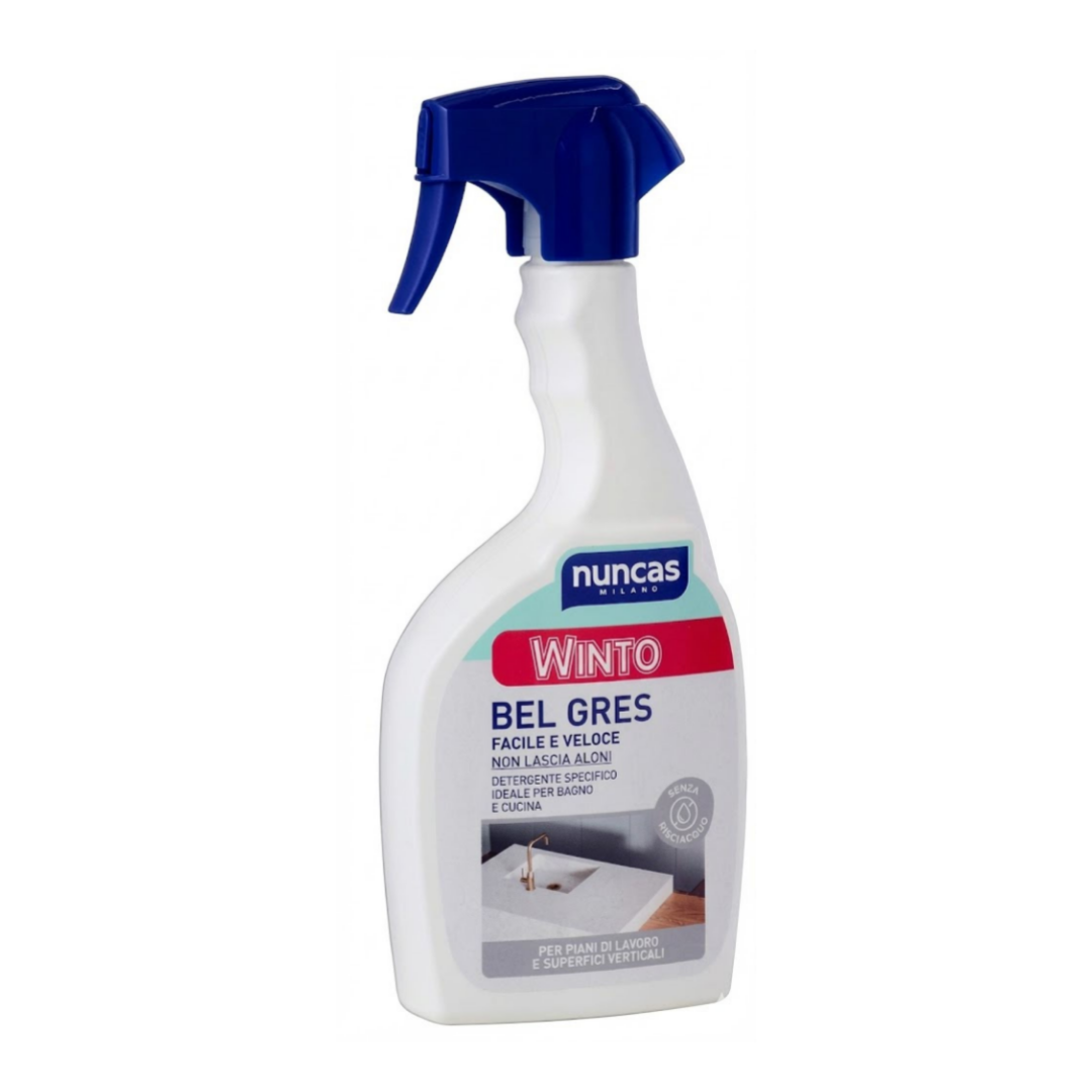 Winto Bel Gres è il detergente professionale per gres porcellanato della casa. Grazie alla sua formula sgrassante e delicatamente acida, è la soluzione ideale per mantenere la bellezza originale di pavimenti, piani di lavoro e rivestimenti, sia moderni che pregiati.