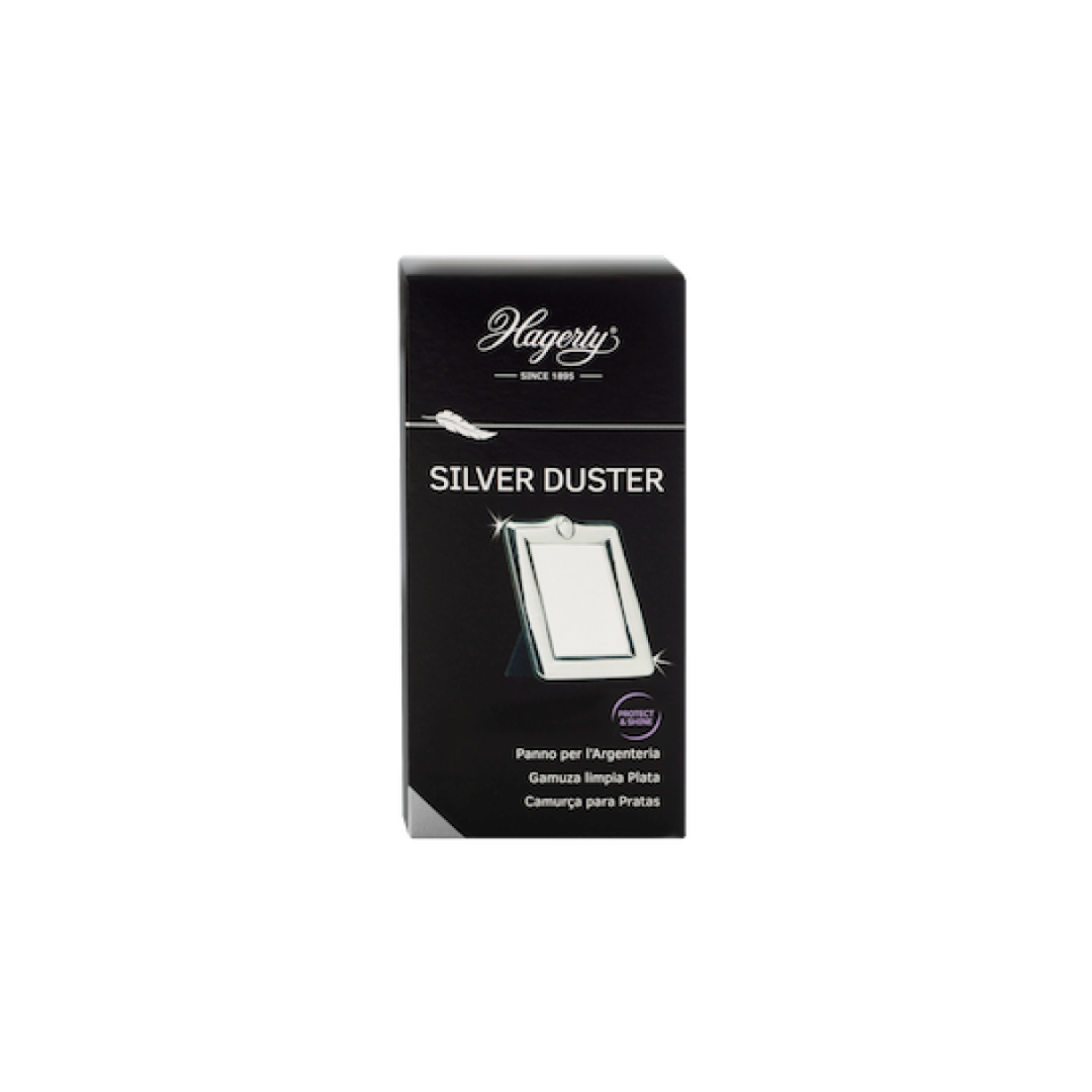 Grazie al cotone impregnato, Silver Duster fa brillare vasi, cornici e altri oggetti anneriti d'argento o placcati argento. Il panno protegge, rimuove lo sporco e l'ossidazione dai soprammobili e da altri oggetti preziosi. Si prende cura in profondità dell’argento ossidato.