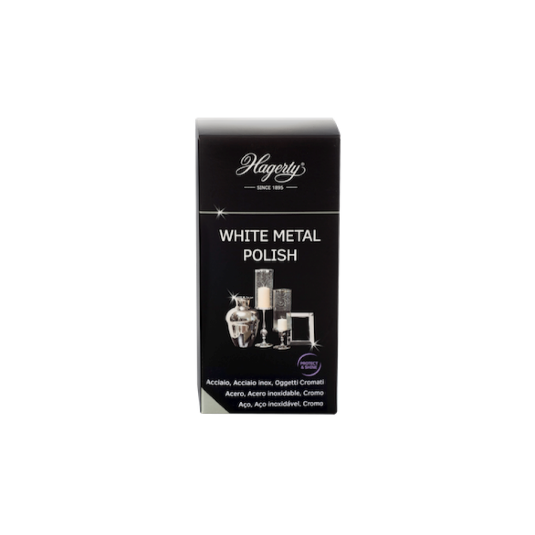 White Metal Polish fa brillare gli elettrodomestici e gli altri oggetti in acciaio, inox e cromo e rimuove i segni di ruggine, calcare, grasso e le impronte delle dita. La lozione protegge dalle gocce d'acqua per molte settimane impedendo agli oggetti di opacizzarsi di nuovo. Si prende cura in profondità del rivestimento del lavandino, del frigo, del forno e della macchina da caffè, ad esempio.