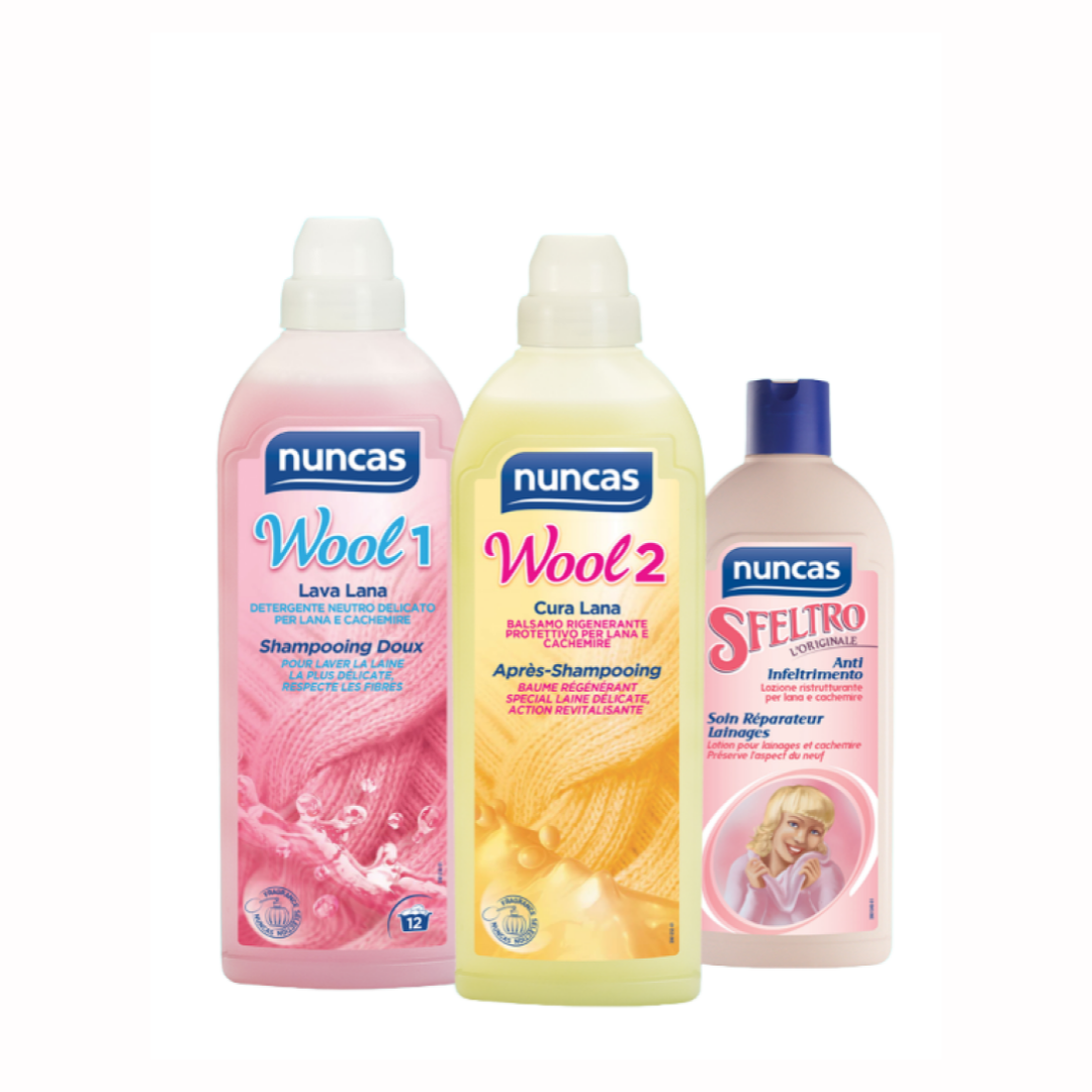 Il Kit Cura Lana di Nuncas deterge, protegge e nutre i tuoi capi di lana, anche i più preziosi.